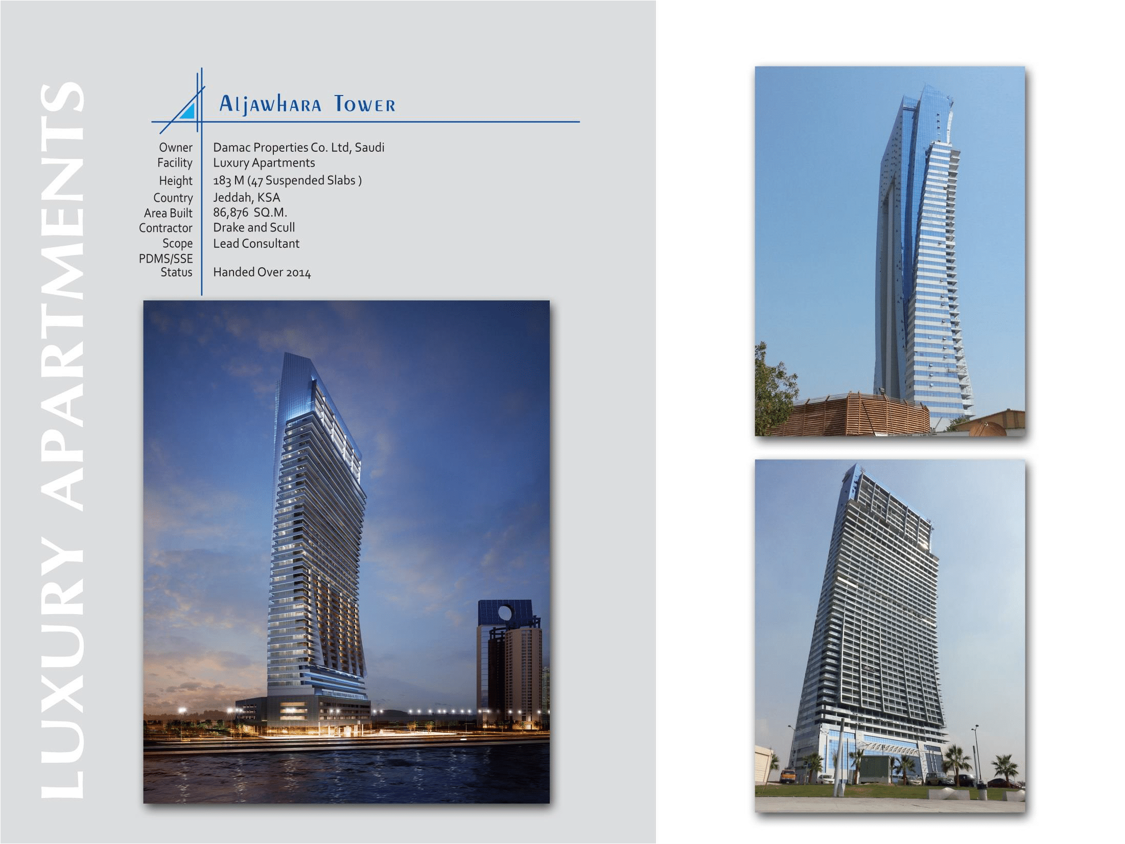 •47 storeys - 224 meters •Interiors designed by Versace Home •Winner of ‘Residential Project of the Year’ at the ‘Design and Build Awards’ held in Riyadh, KSA